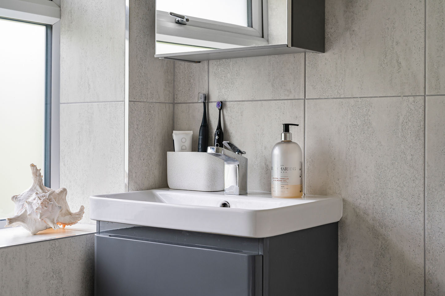 in everyday life but unfortunately they don't do the photos any favours. Look to minimise the amount on display and perhaps keep out just a few of the bare essentials such as hand soap or a few high quality items. Less is definitely more. One useful tip and something I find makes a big improvement to most bathrooms is to add a houseplant, even if it's temporarily moved from another room.